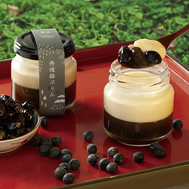 丹波路ぷりん 黒豆は完成までに4日間かけた、丹波黒豆がたっぷり味わえる丹波ならではの贅沢なプリンです。
